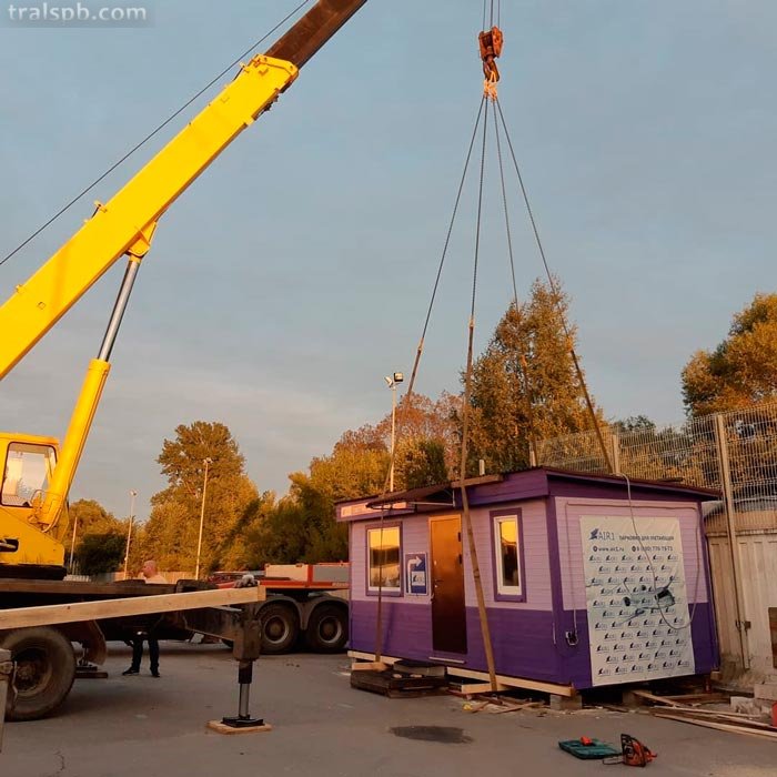 При выполнении своих функций на объекте временные жилые конструкции обычно доставляют на новую стройплощадку. Перевозка строительных бытовок предполагает использование трала либо крана-манипулятора, поскольку масса и размеры такого домика немалые.
