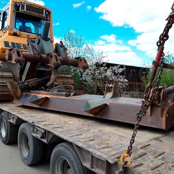 Подавляющее большинство бульдозеров выпускается на гусеничном ходу, что значительно увеличивает их проходимость и производительность, но существенно ограничивает возможность самостоятельного перемещения на дальние расстояния. Поэтому, при необходимости передислокации гусеничной и негабаритной спецтехники на новый объект, используются тралы. Трал - специальный прицеп для перевозки негабаритных грузов, используемые в сцепке с седельным тягачом.